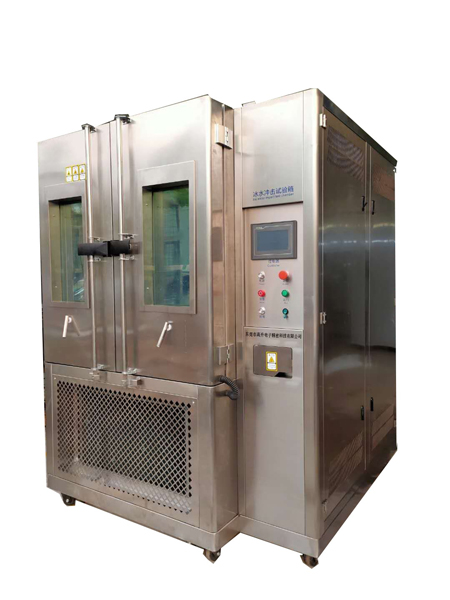 冰水沖擊試驗機適用于進行產品的耐冰水飛濺測試。模擬冬天當在潮濕的路面駕駛時冰水濺落到發熱系統或組件上。失效模式為不同的溫度膨脹系數導致材料機械性龜裂或是密封失效。是各類電子、電工、電器、塑膠等原材料和器件進行耐寒、耐熱、耐冰水飛濺性試驗、耐冰水浸沒性試驗及品管工程的可靠性測試設備。