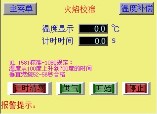 該設(shè)備由PLC、觸摸屏、流量計(jì)、壓力表、U型背壓力計(jì)、燃燒箱、噴燈、電磁閥、高壓點(diǎn)火器、電線試品夾具、煤氣管、火焰高度規(guī)、高度尺、溫度計(jì)、熱電偶和測溫銅塊等組成。