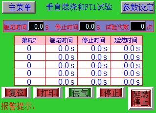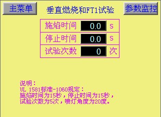 A.電源開關(guān)打開,進(jìn)入《垂直火焰和FT1試驗(yàn)》界面。