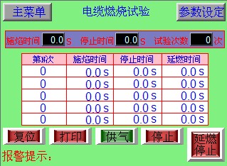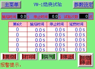 1.開啟電源后,根據(jù)試驗(yàn)要求,選擇相應(yīng)的試驗(yàn)?zāi)J剑辉囼?yàn)?zāi)J竭x定后,則施焰時(shí)間、