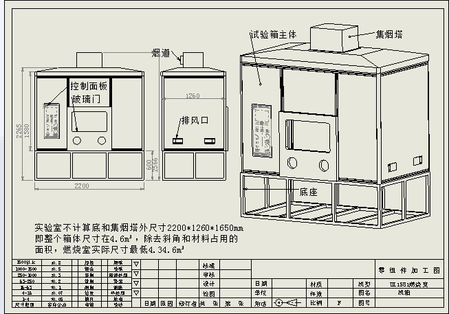 (2)箱體頂部設(shè)有強(qiáng)力抽風(fēng)排煙系統(tǒng);在試驗(yàn)完成時(shí),拉開旁側(cè)的風(fēng)門,同時(shí)在觸摸屏內(nèi)按下抽風(fēng)開關(guān),能將廢氣及時(shí)排出到室外,將廢氣全部排出約需2分鐘時(shí)間;而在試驗(yàn)過程中,此系統(tǒng)必須為封閉狀態(tài);