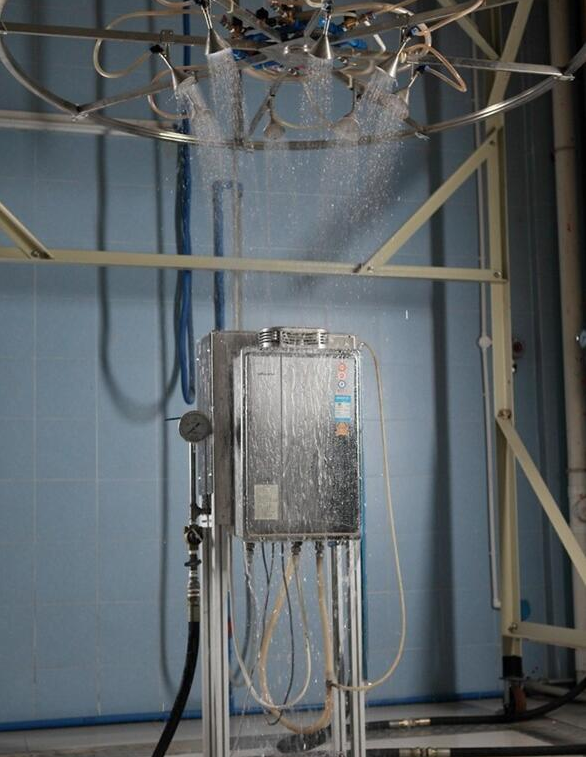 1.滿足GB6932-2015《家用燃氣快速熱水器》中第7.7.4、7.7.5、7.7.6所要求的試驗方法進行噴淋狀態試驗;