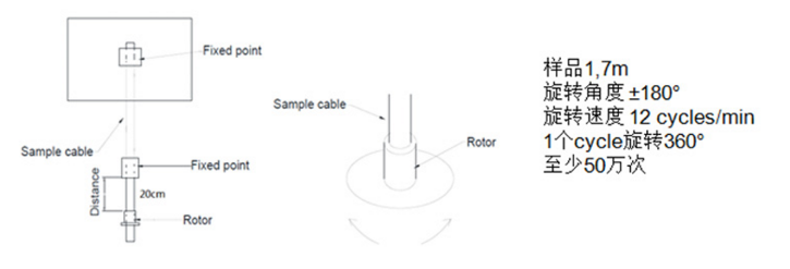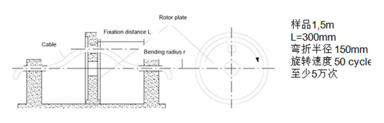這項(xiàng)測試中電纜兩端固定,中間部分做離心旋轉(zhuǎn)運(yùn)動。