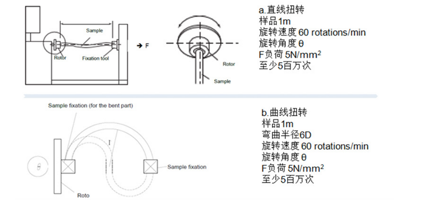 我們對電纜進(jìn)行2Pfg2577/08.16 標(biāo)準(zhǔn)中規(guī)定的機(jī)械耐久性測試后,如果線纜表面不出現(xiàn)開裂,對線芯施加1500V的情況下沒有出現(xiàn)有擊穿現(xiàn)象,導(dǎo)體電阻值增量不超過5%,同時(shí)傳輸性能滿足要求,那么這就是一條高質(zhì)量的機(jī)器人電纜。