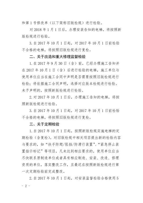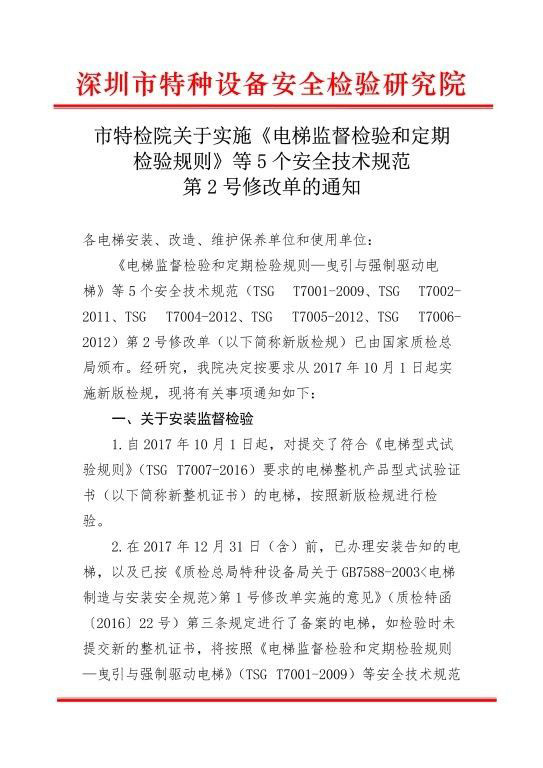 關于實施《電梯監(jiān)督檢驗和定期檢驗規(guī)則》等5個安全技術規(guī)范第2號修改單的通知