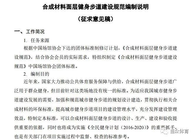《合成材料面層健身步道建設規范(征求意見稿)》內容如下: