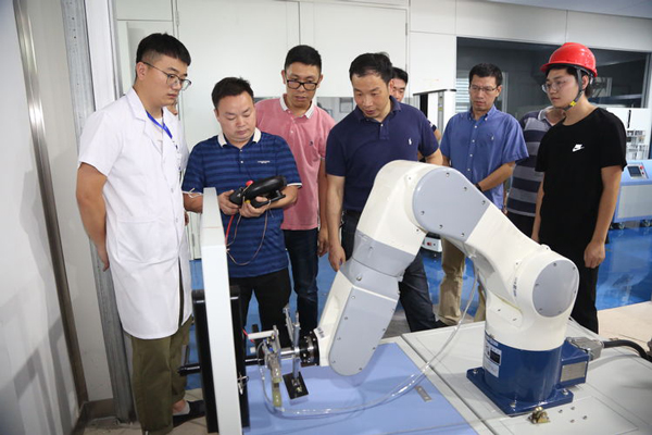 恰逢設備驗收調試期間,永康市市場監督管理局周雄軍局長在督查國家中心二期建設過程中,參觀了防盜門、智能門鎖設備檢測區,并對由Delta德爾塔儀器供應的智能門鎖壽命耐久性試驗機、防盜門撞擊試驗裝置等多項檢測設備和技術先進作出認可和肯定,同時也對我司的設備提出了更高的期待和要求!當我司工程師介紹的我們的設備16秒即可做完一套鎖具耐久測試動作而傳統鎖具檢測設備需要2分鐘左右完成同一個動作時,周局長當即對設備的高效精準表示點贊。