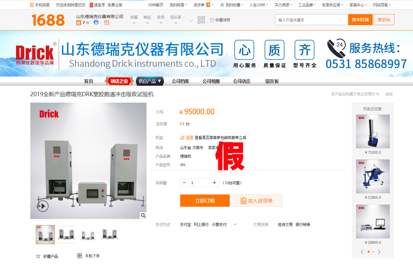阿里巴巴店鋪盜竊了我司塑膠跑道沖擊吸收和垂直變形試驗(yàn)機(jī)圖片,修改了我們Delta德爾塔儀器LOGO
