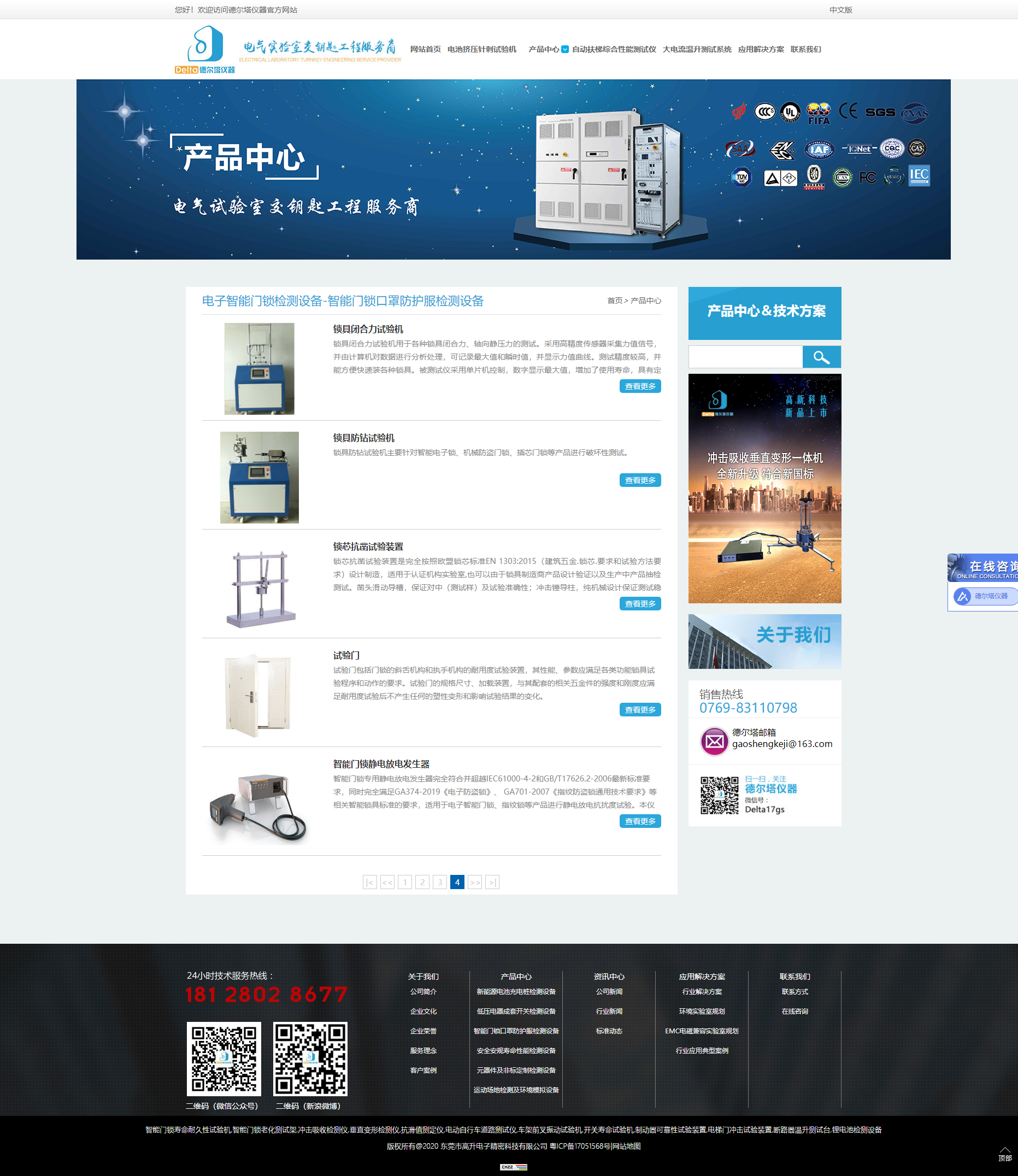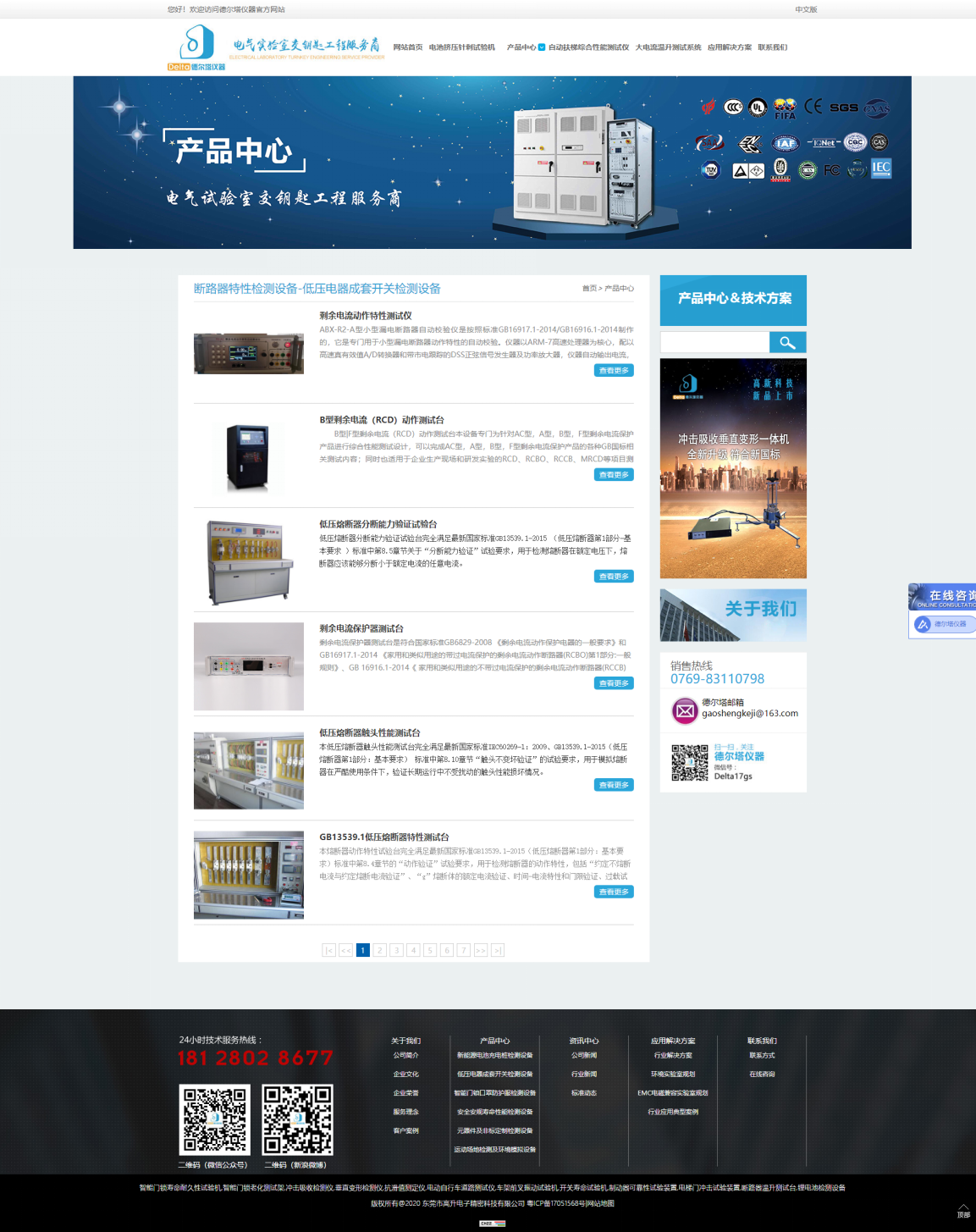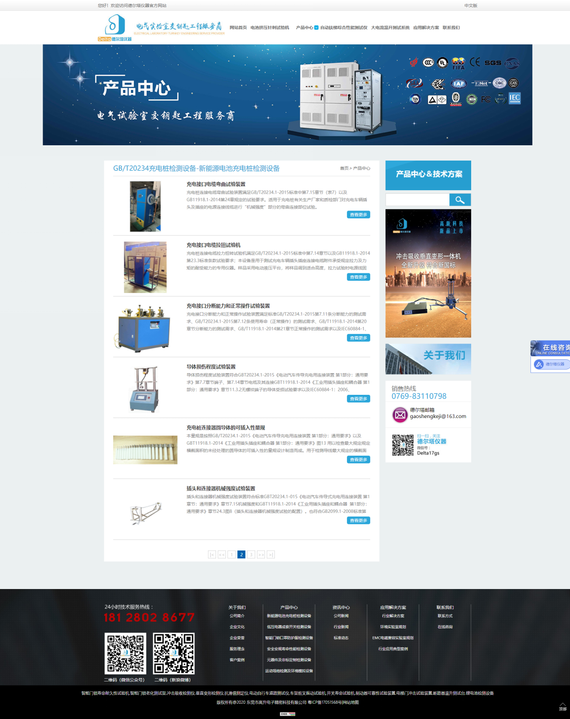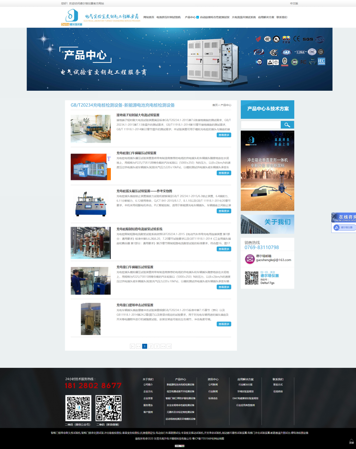 以下為我司官網(wǎng)截圖(只列出一部分),這是新能源電池充電樁和低壓電器成套開關(guān)檢測設(shè)備系列產(chǎn)品信息: