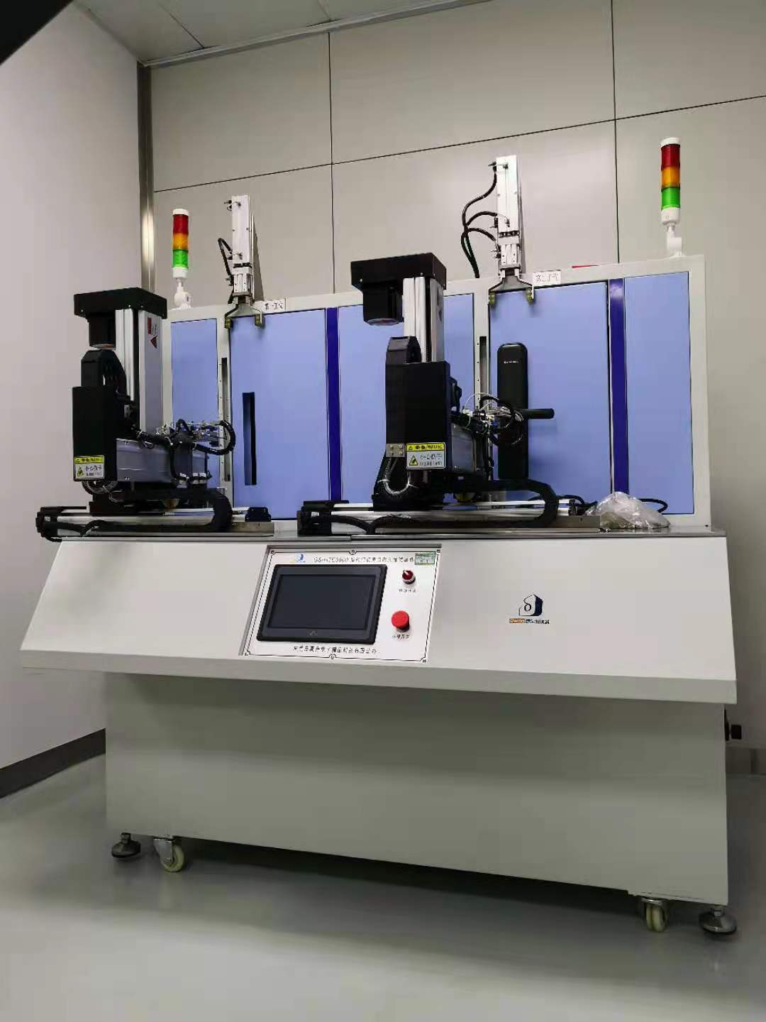隨后眾多參會代表參觀了南孚電池的實驗室和生產車間,諸位與會代表對南孚電池的智能門鎖專用電池技術給予了充分的肯定。以下是Delta德爾塔儀器公司為南孚電池實驗室非標定制的雙工位智能門鎖壽命耐久性試驗機,該試驗機不僅能夠滿足智能鎖的壽命耐久性測試,還能針對智能鎖在測試過程中的耗電狀態進行實時的電流、電壓、功耗、溫升等數據的動態監測,并能以曲線的形式記錄下來,設備具有實時報警、斷電保存、數據傳輸等功能,方便客戶摸底、排查、研發改進產品的合格率良品數據。