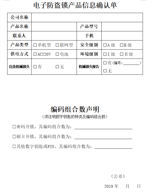 【2】GA374-2019鎖具信息確認(rèn)單+編碼組合數(shù)聲明(加蓋公章)