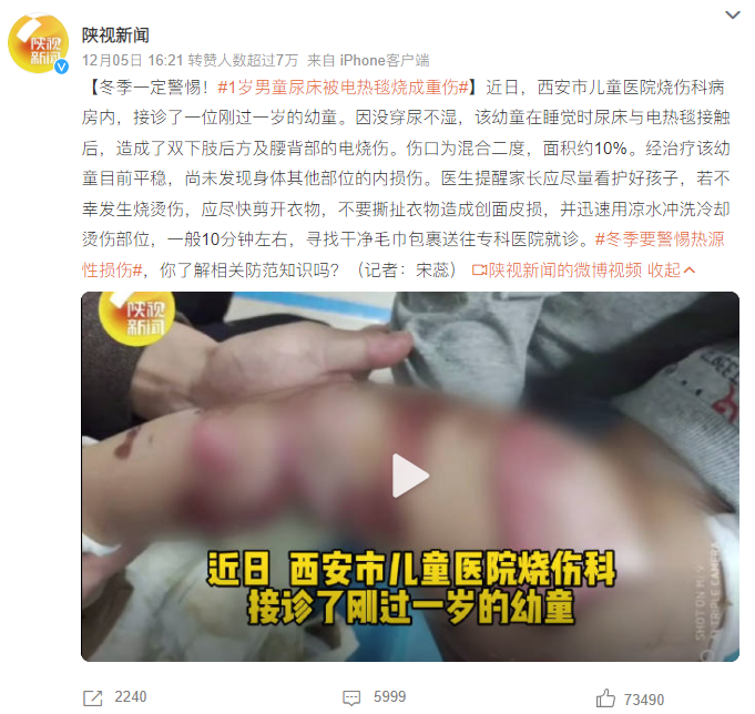 近日,西安一名1歲男童尿在睡覺時尿床與電熱毯接觸后,造成了雙下肢后方及腰背部的電燒傷。像電熱毯、電熱墊、電熱桌墊等家用電器都是冬天取暖最受歡迎的小家電產品。然而,市場上的產品質量良莠不齊,那么我們來說說電熱毯類產品在抽檢中有哪些常見不合格項呢?以及消費者選購時要如何“避坑”呢?