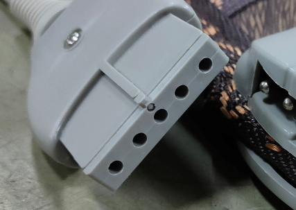 電熱毯連接器開孔處,IEC 61032 的13 號試驗探棒可進入內部觸及內部帶電部件,不符合GB 4706.1-2005和GB 4706.8-2008標準第8.1.2條款“試驗探棒應不能觸及到帶電部件”的要求。