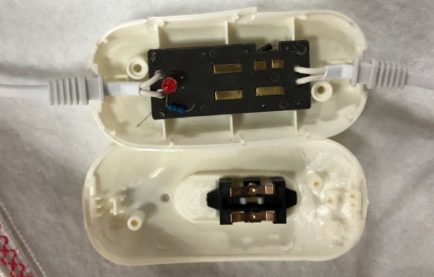 電熱毯控制器外殼固定螺釘與電路板上覆銅線緊靠在一起,在進行帶電部件與觸及部件(螺釘)之間施加3000V電氣強度試驗擊穿,不符合GB 4706.1-2005和GB 4706.8-2008標準第13.3條款“電氣強度不應擊穿”的要求。
