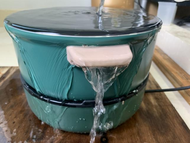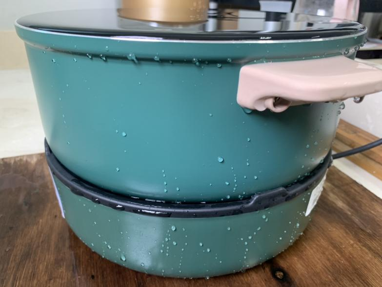 筆者選取了一個電熱鍋樣品,設計對比試驗:所有試驗條件都相同,只是注水的時間不同。