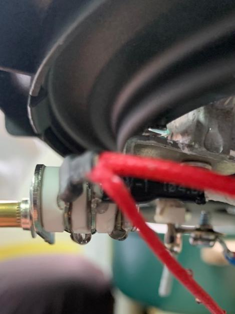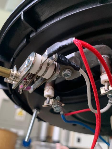 與1min內持續注入器具的試驗相比,10 s內將等量的水溶液持續地注入器具,由于流量是前者的6倍,溢出的水就會從器具邊緣傾瀉而下,如圖4所示,使得更多的水可以進入到器具內部。在本試驗中更直接導致該樣品在經受16.3的電氣強度試驗時基本絕緣被擊穿,器具內部的可調式溫控器甚至被濺入的水弄“失效”,如圖5所示,不能滿足第29章功能性絕緣爬電距離的要求。