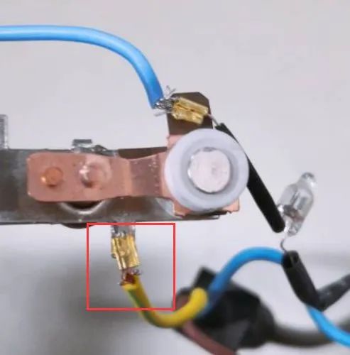 某電火鍋調溫器的接地導線連接如圖1所示,接地導線多股導線由夾片夾住,熔焊到溫控器上。