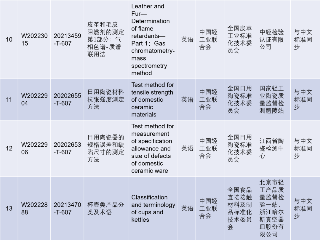 1月11日,國家標準化管理委員會發布關于下達《數據中心能效限定值及能效等級》等360項國家標準外文版計劃的通知,其中包括《白酒檢驗規則和標志、包裝、運輸、貯存》《硼硅酸鹽玻璃化學分析方法》等27項輕工領域推薦性國家標準外文版計劃、《藥用玻璃管》1項輕工領域國家標準指導性技術文件外文版計劃,具體如下。