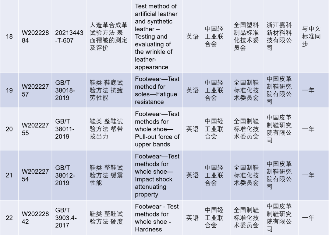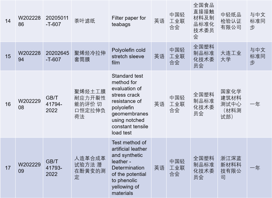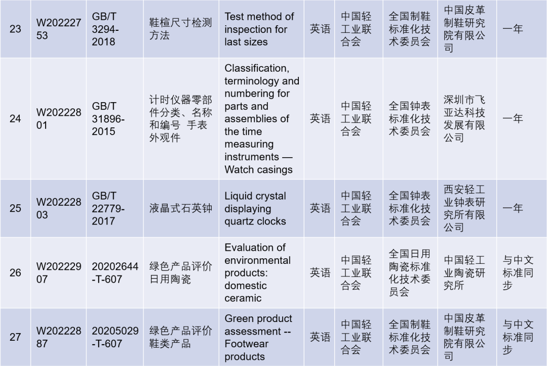 國家標準外文版計劃項目(輕工)