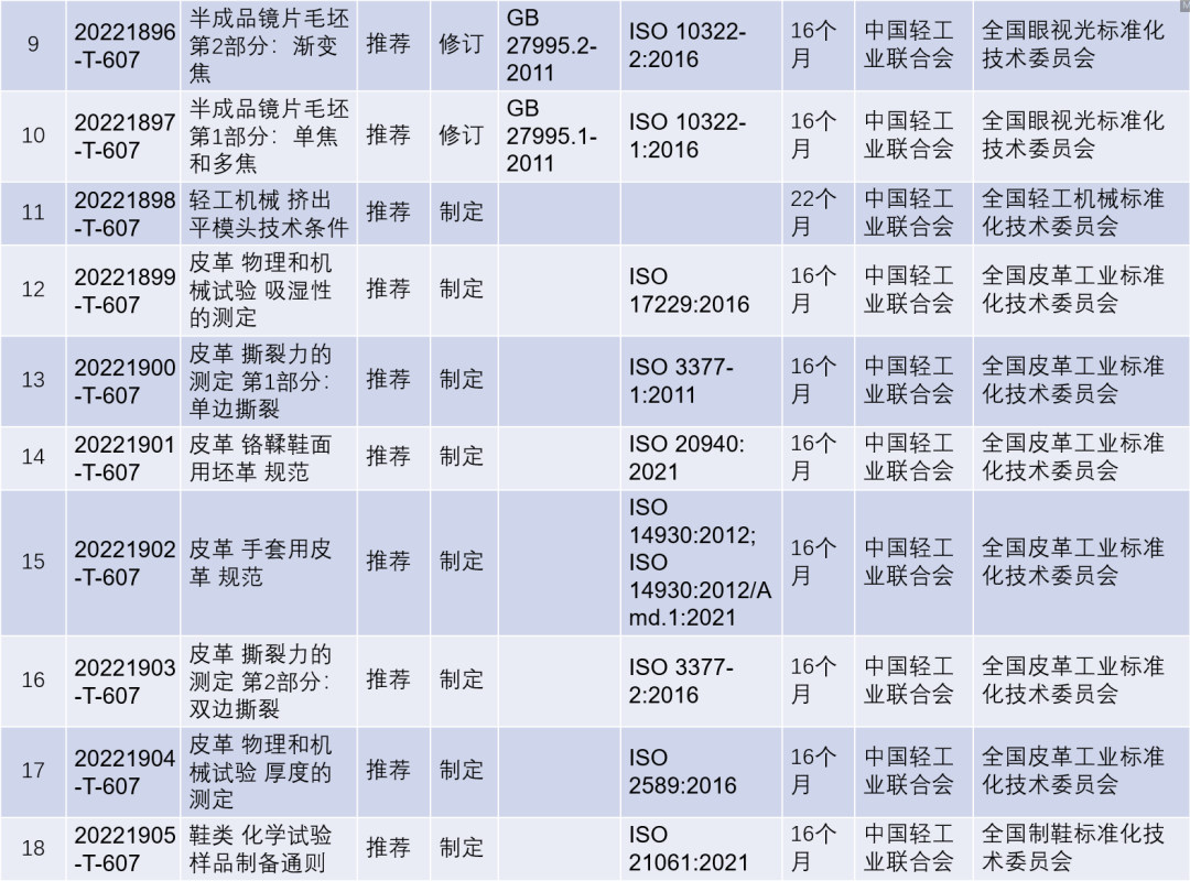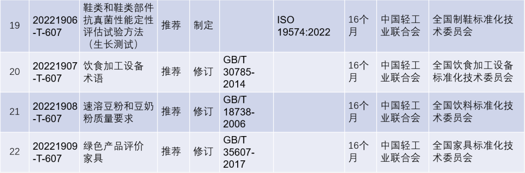 2022年第四批推薦性國家標準計劃項目(輕工行業)