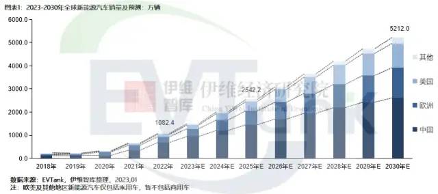 展望未來,EVTank預計全球新能源汽車的銷量在2025年和2030年將分別達到2542.2萬輛和5212.0萬輛,新能源汽車的滲透率將持續提升并在2030年超過50%。