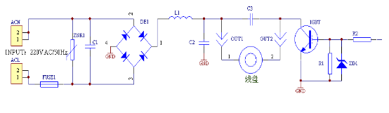 電磁灶是利用電磁感應(yīng)原理將電能轉(zhuǎn)換為熱能的工作原理。由整流電路將50/60Hz的交流電壓轉(zhuǎn)換成直流電壓(AC-DC-AC、交流-直流-交流),再經(jīng)過控制電路將直流電壓轉(zhuǎn)換成頻率為20-35KHz的高頻電壓,高速變化的電流流過線圈產(chǎn)生高速變化的磁場(chǎng),當(dāng)磁場(chǎng)內(nèi)的磁力線通過金屬器皿底部金屬體內(nèi)產(chǎn)生無數(shù)的小渦流,使器皿本身自行高速發(fā)熱。