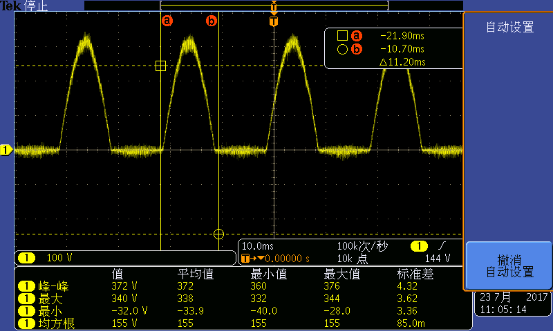 電壓有效值 155 Vr.m.s,沒有超過250V。