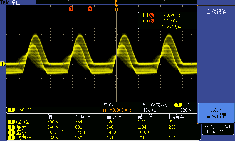 圖3 某電磁灶線圈盤OUT1 – 大地 電壓波形
