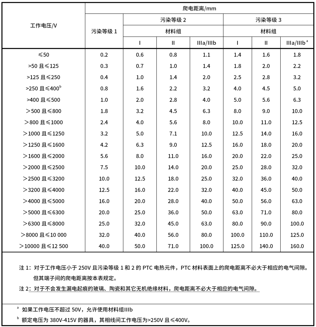 IEC 60335-1:2016 Ed5.2 | 29.2.4 | -Creepage distance limit 爬電距離限值 -PTC material PTC 材料 |