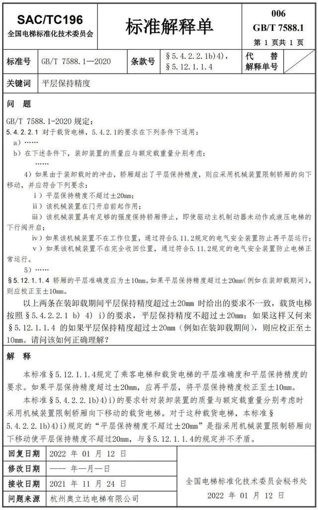 Delta德爾塔儀器小編了解到,GB/T 7588.1—2020《電梯制造與安裝安全規范 第1部分:乘客電梯和載貨電梯》已經于2022年7月1日實施。截止到2022年3月21日,全國電梯標準化技術委員會相繼發布了GB/T 7588.1—2020《電梯制造與安裝安全規范 第1部分:乘客電梯和載貨電梯》第1-10號標準解釋單。