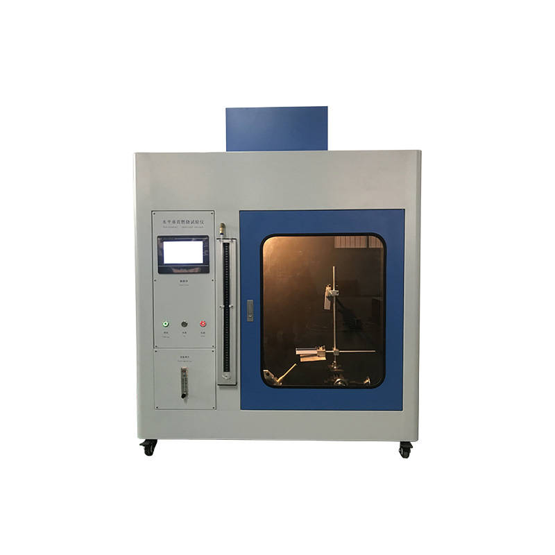 水平垂直燃燒試驗主要參照UL94-2006、IEC60695-11-3、IEC60695-11-4、IEC60695-11-10、GB/T5169.15、16、17、22-2008、GB 4943.1-2011、IEC60950-1:2005Clause 4.7.3等相關標準設計制造而成。采用規定尺寸的本生燈 (Bunsen burner) 和特定燃氣源 ( 甲烷或丙烷 ) ,按一定的火焰高度和一定的施焰角度對呈水平或垂直狀態的試品定時施燃若干次,以試品點燃、灼熱燃燒的持續時間和燃燒長度等來評定其可燃性及著火危險性。燃燒器:本生燈燈管直徑 9.5mm ± 0.5mm 從空氣主進氣口或入口處向上長度約 100mm,試驗傾角:0°、 20° 、 45° 可快速定位切換,最大行程約 150mm,火焰高度:20mm±2mm可調,施焰時間: 0-999.9s±0.1s可調,余焰時間: 0-999.9s±0.1s,自動記錄,手動暫停 ,余灼時間: 0-999.9s±0.1s,自動記錄,手動暫停,燃燒氣體: 98% 甲烷氣或98% 丙烷氣( 一般情況可采用液化石油氣代替 )。