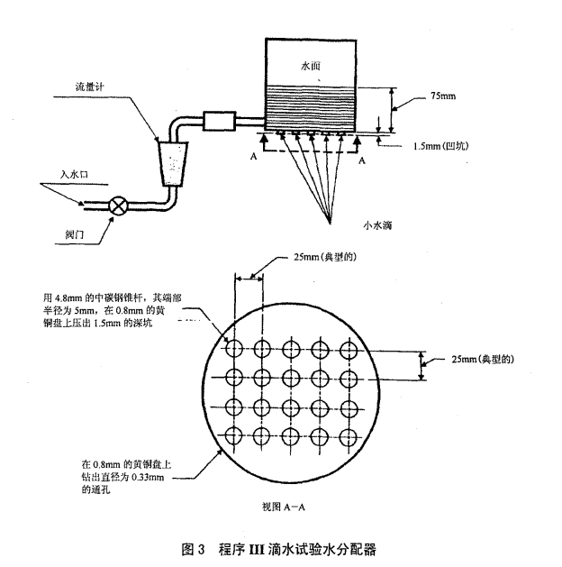 程序3—— 滴水:使試件工作,并使其以均勻速率承受規定高度不小于1m 的降雨15min。