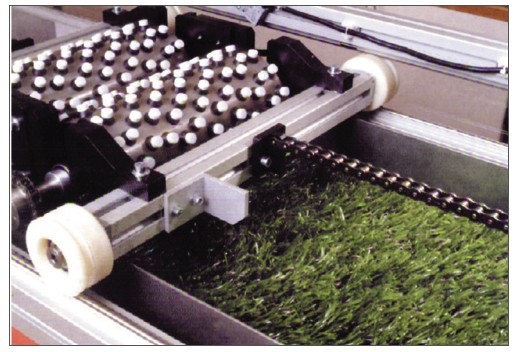 人造草坪耐磨損試驗(yàn)機(jī)是用于在人造草坪樣品上來(lái)回碾壓,模擬正常使用時(shí),運(yùn)動(dòng)員穿著帶釘運(yùn)動(dòng)鞋在草坪上運(yùn)動(dòng),達(dá)到一定的時(shí)間周期后,檢驗(yàn)、評(píng)價(jià)草坪的磨損情況。耐磨性能良好的人造草坪更耐用,使用壽命更長(zhǎng)久。本試驗(yàn)機(jī)結(jié)合國(guó)外先進(jìn)同類(lèi)設(shè)備優(yōu)點(diǎn)并自主創(chuàng)新,采用橫縱兩維方向上的兩個(gè)獨(dú)立運(yùn)動(dòng)系統(tǒng)更合理地模擬人造草坪實(shí)際使用時(shí)的磨損情況,并且結(jié)構(gòu)緊湊,噪音小,操作簡(jiǎn)單,便捷美觀。