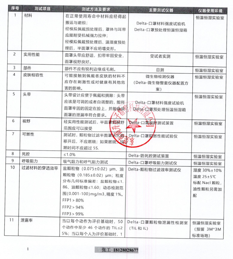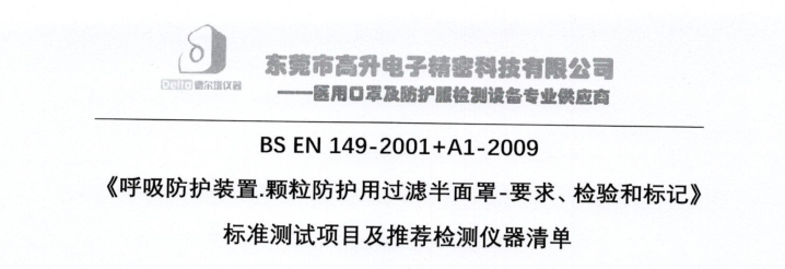 BS EN 149-2001+A1-2009 《呼吸防護(hù)裝置.顆粒防護(hù)用過(guò)濾半面罩-要求、檢驗(yàn)和標(biāo)記》 標(biāo)準(zhǔn)測(cè)試項(xiàng)目及推薦檢測(cè)儀器清單