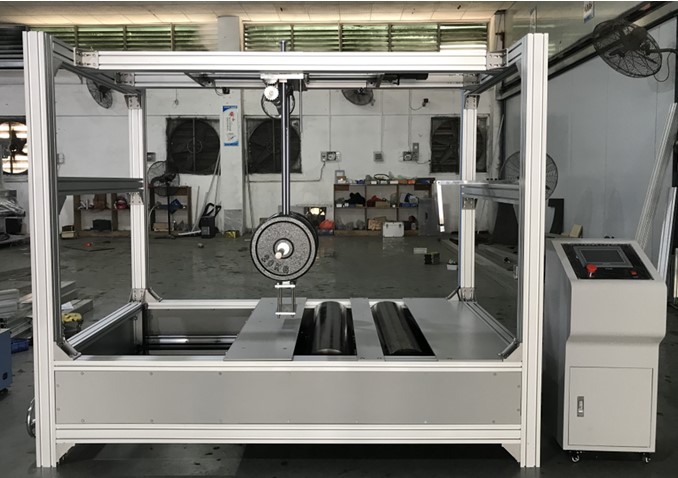 本機依據 CNS6263-11 設計制造,其目的是模擬滑板車,溜冰鞋路況運動時底輪及車體之動態耐用之程度(亦可用來作其它類產品之試驗),為改善動態耐用性之質量提供可靠之依據。本機是通過馬達帶動鏈輪運動,從而帶動滾筒轉動,并通過調節馬達轉速改變滾筒之轉 速來達到測試目的。
