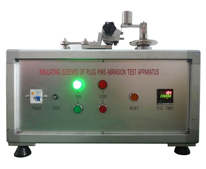 26 | 插頭絕緣護套耐磨損試驗機 (GS-HT305) | 符合滿足GB/T2099.1-2021標準中24.8條款及圖28、IEC 60884-1圖28和BS1363圖9標準試驗要求 | 設備概述: 本裝置符合滿足GB/T2099.1-2021標準中24.8條款及圖28、IEC 60884-1圖28和BS1363圖9的標準要求,適用于檢測插頭的插銷絕緣襯套的耐磨損性能。 設備組成及工作原理: 試驗裝置是由一個水平放置的橫梁和線性運動的夾具座組成,橫梁末端裝有直徑為1mm的短鋼絲彎成的U字形頭(U字形的兩個點垂直固定在橫梁上),鋼絲U型底邊為6mm直線工作部分。 將U型鋼絲6mm直線底邊壓在插銷絕緣套上,電機帶動安裝有插銷的夾具座做前后往復運動,從而鋼絲與插銷絕緣試樣摩擦進行試驗。 主要技術參數: 1、工作電源:AC220V、50HZ; 2、工作次數:1~999999可預置 ; 3、刮磨頻率:30次/分鐘,往、返各計一次; 4、壓力荷重:4N; 5、工作行程:9mm ; 6、工位:單工位(可定制雙工位)。 |