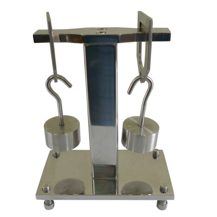 16 | 拔出力試驗裝置 (GS-BCL108) | 符合GB/T2099.1-2021標準中第22.2、22.3條款及圖18/19規格所示試驗要求 | 設備概述: 本裝置是用于檢測插頭從插座拔出所需要的力是否在規定的范圍之內的專用試驗儀器.它符合GB/T2099.1-2021標準中第22.2、22.3條款及圖18/19規格所示試驗要求、IEC60884-1:2013標準,它是電器附件、家用電器制造廠家、質量檢測部門和科研單位檢測日用電器產品不可缺少的裝置。 二. 技術要求 1、 插座極大拔出力應符合表1要求。 將標準規定的拔出力(主砝碼、附加砝碼、夾緊裝置、 砝碼盤及試驗插頭合起來的總的力),施加在試驗插頭上,插頭應從插座脫出。 2、極低拔出力應符合表1規定 將標準規定的極低拔出力(即符合本標準規定的試驗插銷<單插銷>,該插銷的總質量應等于表中規定值)的量規插入插座中每個單獨的插套里,在30秒內量規不得從插套里脫出。 3、砝碼選擇 主砝碼、附加砝碼、砝碼盤和試驗插頭/插銷的重量詳見表三,使 用者應按表1規定選用合適的重量進行試驗。 4、結構特點 本裝置主要由安裝頂板A及下面的夾緊裝置、主砝碼F、附加砝碼G和砝碼盤(E)組成。綜合使用經驗,將D拉夾改為配重砝碼,砝碼鉤直接連接試驗插頭,配置夾持試樣B的夾具。本裝置框架內高550mm,兩立柱軸線間距離為150mm。 |